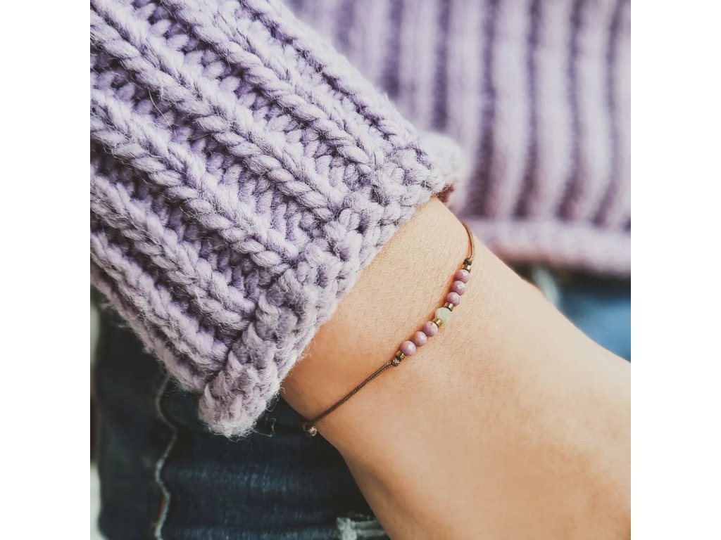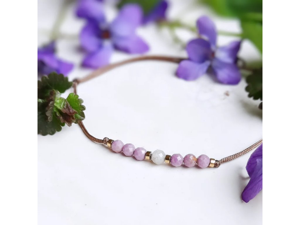 Náramek Violeta s lepidolity a bílým turmalínem.